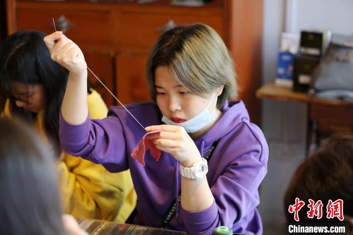 学生正在学习刺绣。 韦鼎标 摄