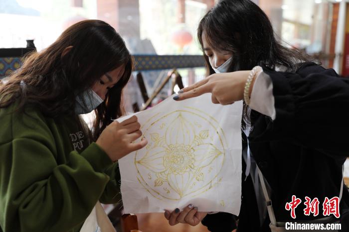 10月21日,在广西柳州市融水苗族自治县彩云苗艺非遗文化展示馆内,几名学生正在学习苗族蜡染技艺。当天,来自柳州工学院艺术与设计系的100余名师生到此开展校外见习活动,学生面对面接触苗族的刺绣和蜡染技艺,在学习中传承民族技艺。苗族蜡染和刺绣均是国家级非物质文化遗产之一。