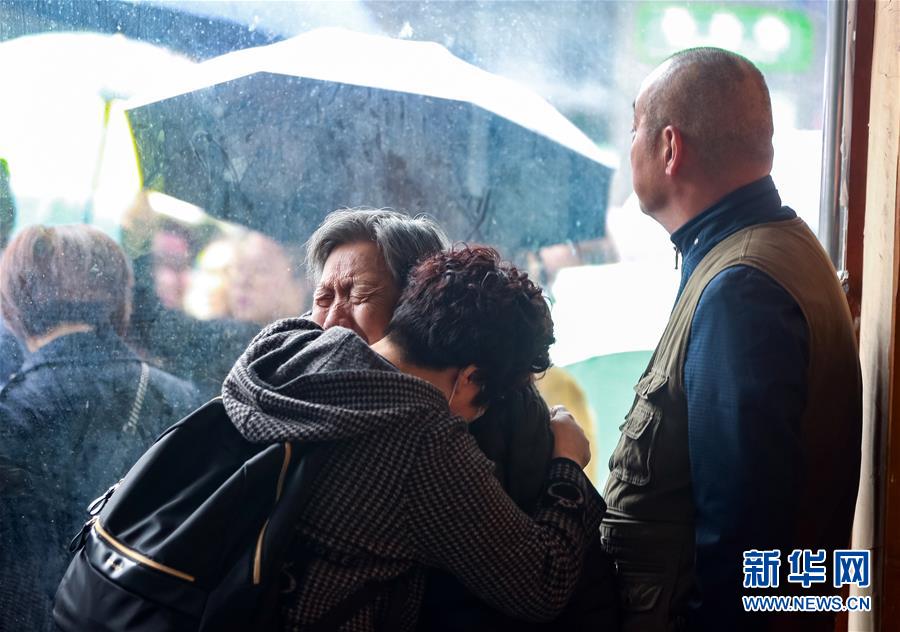 10月15日,在四川省广元市苍溪县,当载着李雨阗灵柩的灵车经过时,他的外婆(前左)失声痛哭。当日,苍溪县各界群众自发走上街头,送别勇救坠江女子因公牺牲的民警李雨阗。 新华社发(四川省公安厅供图)