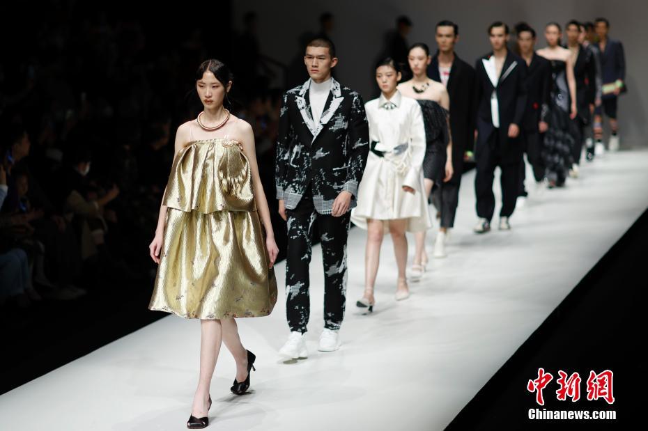 10月27日,德锦·周丽2021春夏《手写》时装新品发布会在北京751D·PARK举行。寻根传统手工艺文化的设计师在呈现传统技艺与非遗大美的同时,结合现代生活需求与时尚风格审美,让传统艺术尽显国际化风范。中新社记者 盛佳鹏 摄