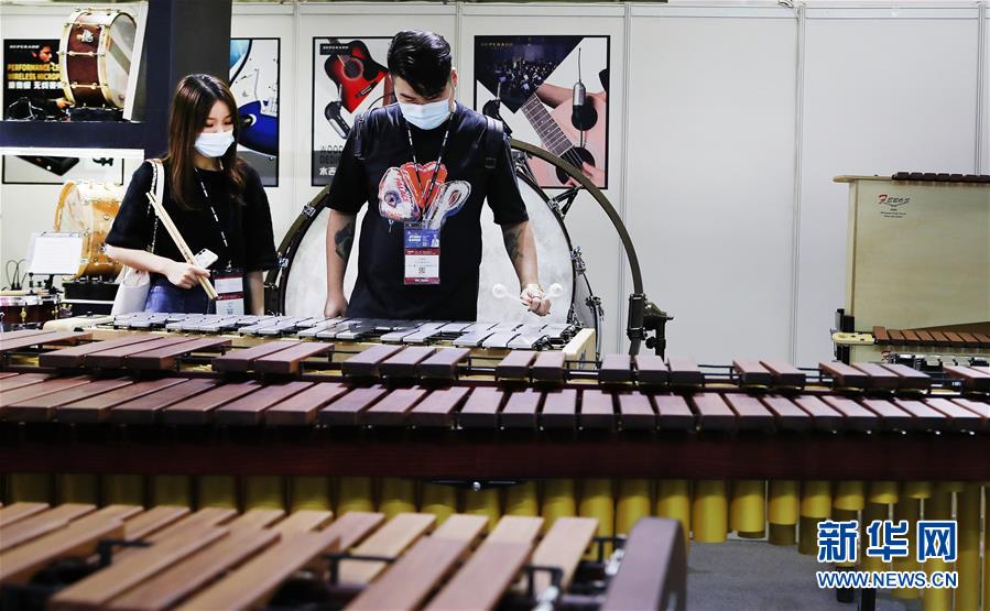 10月28日,参观者在一组打击乐器前驻足。 当日,2020中国(上海)国际乐器展览会在上海新国际博览中心开幕。来自德国、日本等11个国家和地区的逾1000家乐器行业企业在展览会上展示各自最新产品,吸引众多音乐爱好者前来参观。 新华社记者 方喆 摄