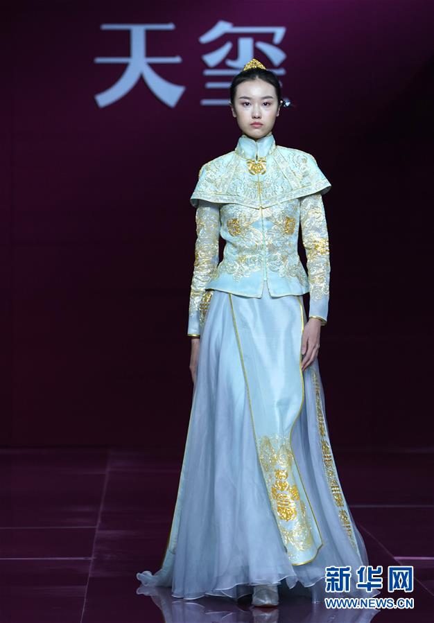 10月29日,模特在展示设计师苏娟娟设计的礼服。 新华社记者 陈建力 摄