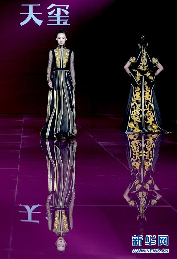 10月29日,模特在展示设计师苏娟娟设计的礼服。 新华社记者 陈建力 摄