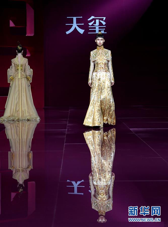 10月29日,模特在展示设计师苏娟娟设计的礼服。 新华社记者 陈建力 摄
