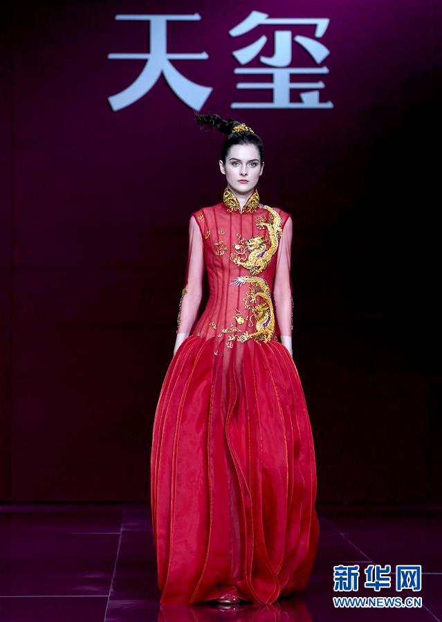 10月29日,模特在展示设计师苏娟娟设计的礼服。 新华社记者 陈建力 摄