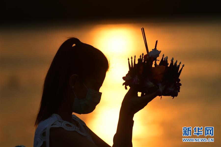 10月31日,一名女子在泰国曼谷湄南河边放水灯。 当日是泰国传统节日水灯节,泰国各地民众前往河流或湖泊沿岸施放水灯,祈求流水带走厄运,未来幸福如意。 新华社发(拉亨摄)