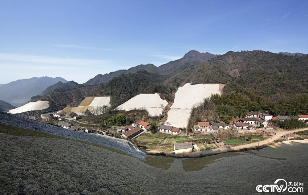 图为这是泾县灰坑晒场。,选好的檀皮和稻草需要炮制和摊晒。