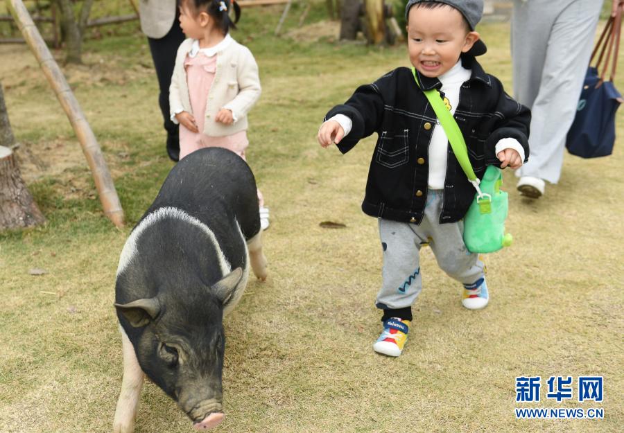11月17日,小朋友在菰城村一家动物农场和动物亲密接触。新华社记者 翁忻旸 摄