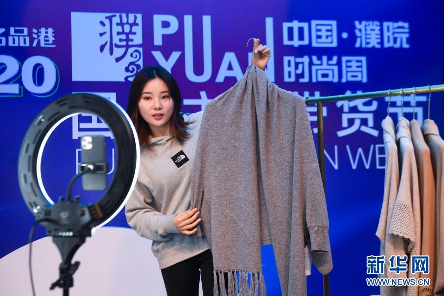 11月17日,一名主播在濮院羊毛衫市场进行直播带货。新华社记者 徐昱 摄