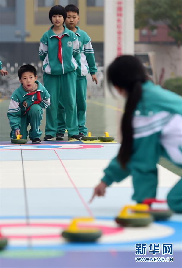 11月17日,沧州市实验小学的学生进行陆地冰壶训练。 近年来,河北省沧州市持续推进“冰雪运动进校园”活动,将陆地冰壶、轮滑等旱地冰雪运动引入学校,培养青少年的参与热情。 新华社发(傅新春 摄)