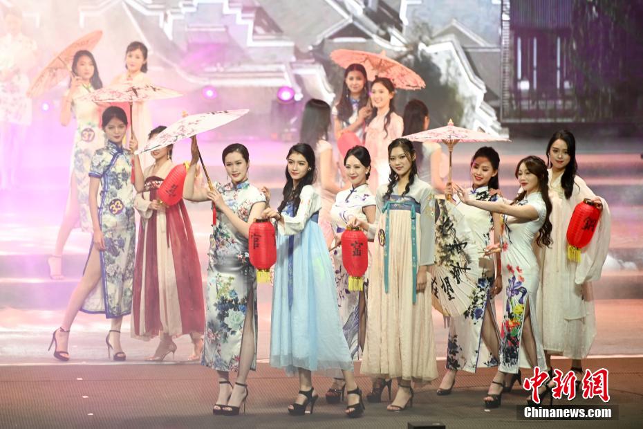 图为选手们身着华服展示女性魅力。 杨华峰 摄