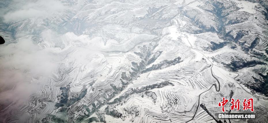 从飞机上俯瞰甘肃黄土高原线条交织如水墨,黑白分明。 魏建军 摄
