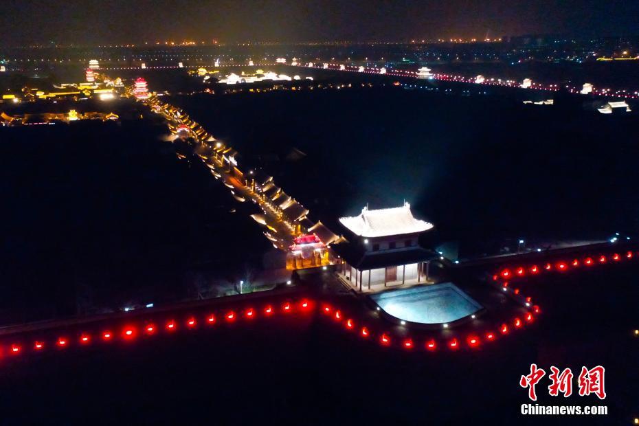 11月23日晚,航拍山西太原古县城亮灯夜景。位于太原市晋源区的明太原县城建于1375年,2011年被列入中国国家级历史文化街区,当地政府于2012年启动复兴工程。目前,明太原县城复建工程基本完成,古城风貌即将再现。中新社记者 武俊杰 摄