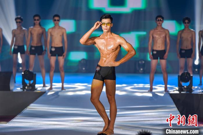 图为男子组冠军卢文东进行泳装环节的展示。 骆云飞 摄