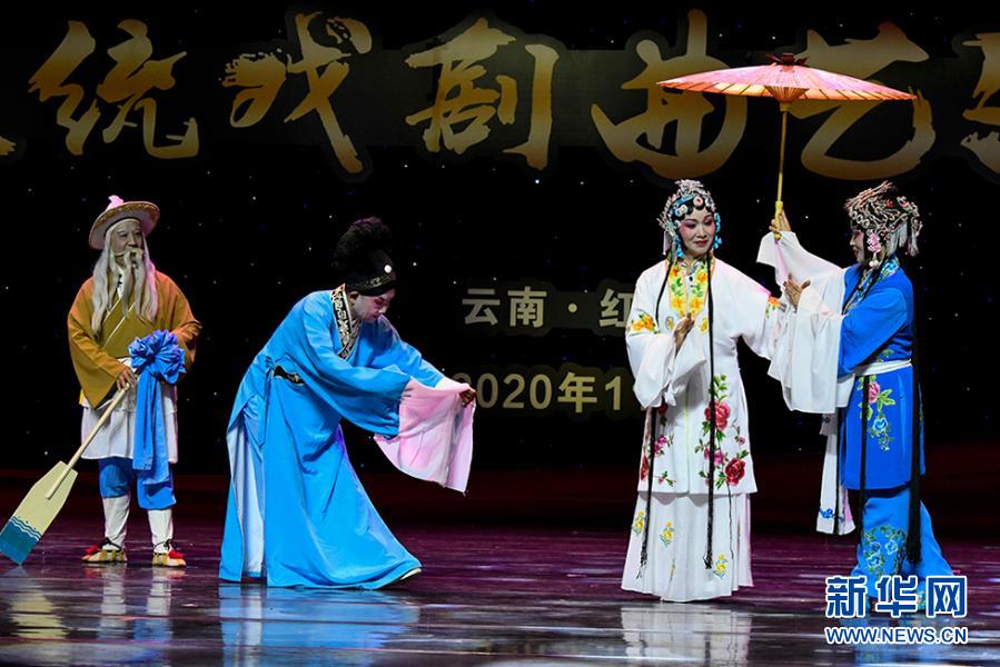 在红河哈尼族彝族自治州蒙自市举行的云南省第二届传统戏剧曲艺汇演上,以滇剧、花灯戏、皮影戏为代表的云南传统戏剧曲艺在红河大剧院及周边广场轮番上演。