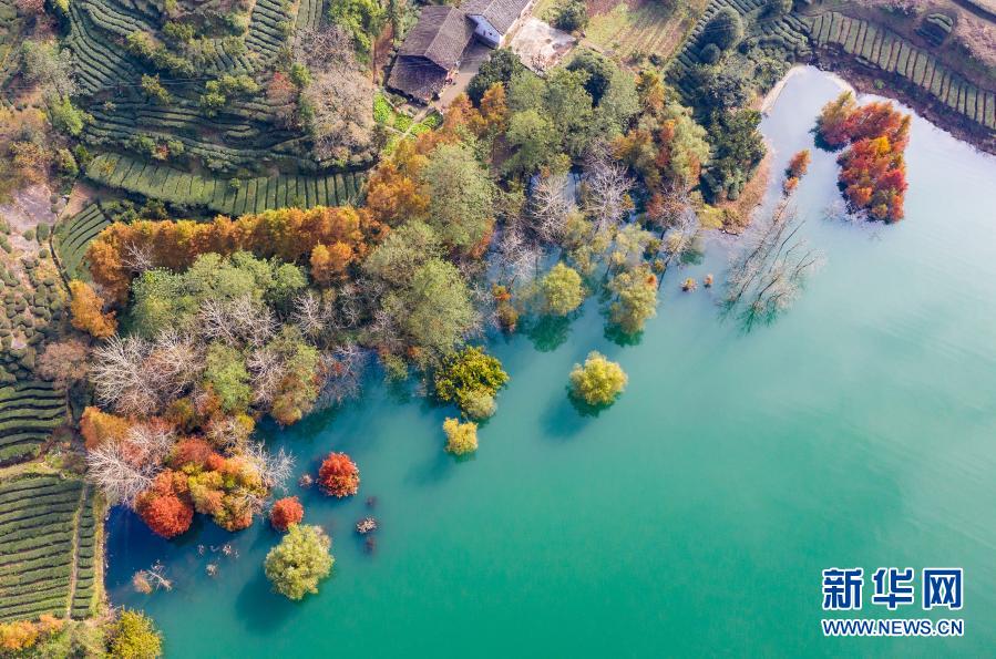 11月29日拍摄的三峡库区湖北省秭归县茅坪镇兰陵溪村多彩的库岸(无人机照片)。