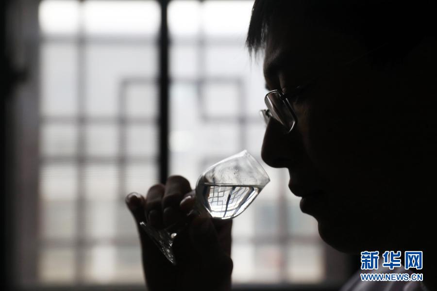11月28日,安徽省濉溪县一酒企技术中心的工作人员在检验白酒品质。