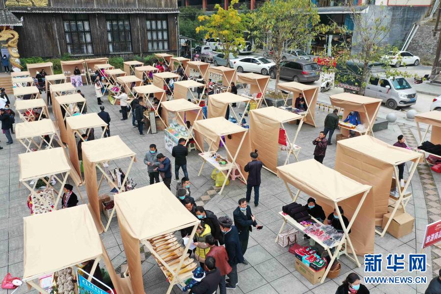 这是11月29日拍摄的贵州省从江县周末非遗扶贫集市开市现场(无人机照片)。