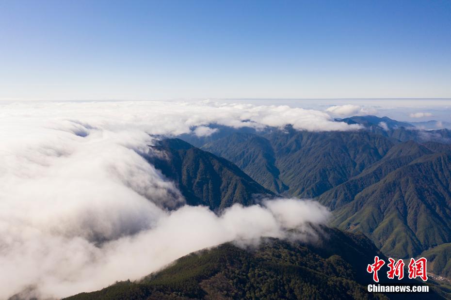 从空中俯视,漫无边际的云海如临于大海之滨。 丁铭华 摄