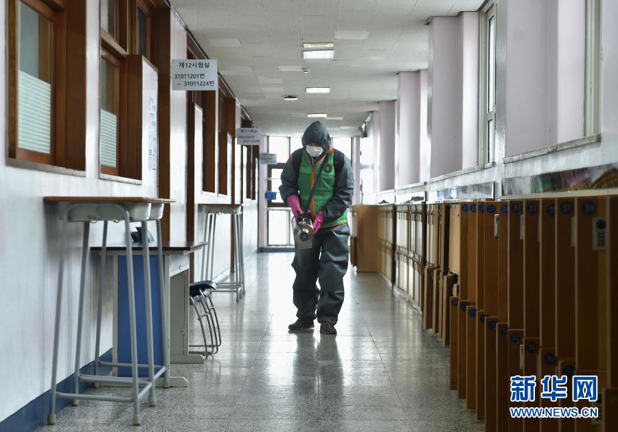 受新冠疫情影响,原定于今年11月19日举行的韩国大学修学能力考试(相当于中国的“高考”)被推迟至12月3日举行。高考前夕,韩国各地考点进行消杀等准备工作,以确保高考在安全的环境中进行。新华社发(李相浩 摄)