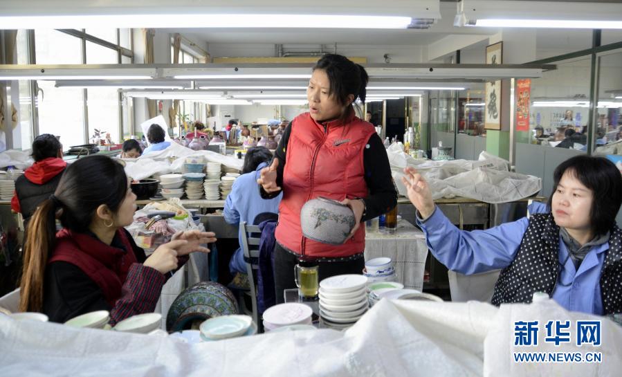从2005年起,北京珐琅厂有限责任公司开始招收聋哑人技工,经过老技师们的精心培养,目前有17位聋哑人成为景泰蓝技师,有些还成为景泰蓝技艺国家二级技师。通过学习景泰蓝技艺,这些聋哑人在无声的世界里有了一个多彩的人生。新华社记者 李欣 摄
