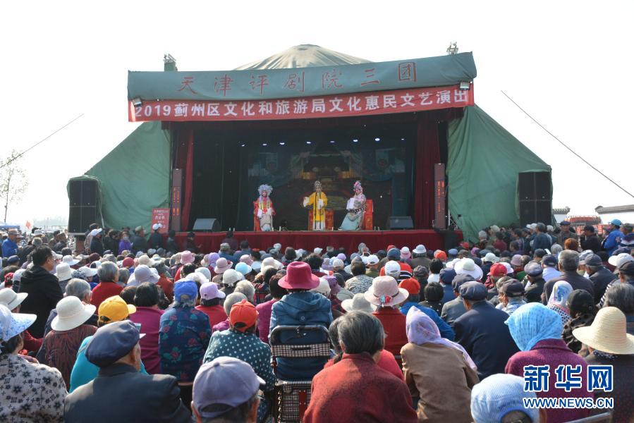 天津评剧院三团在天津市蓟州区演出评剧《打金枝》(2019年4月15日摄)。新华社发