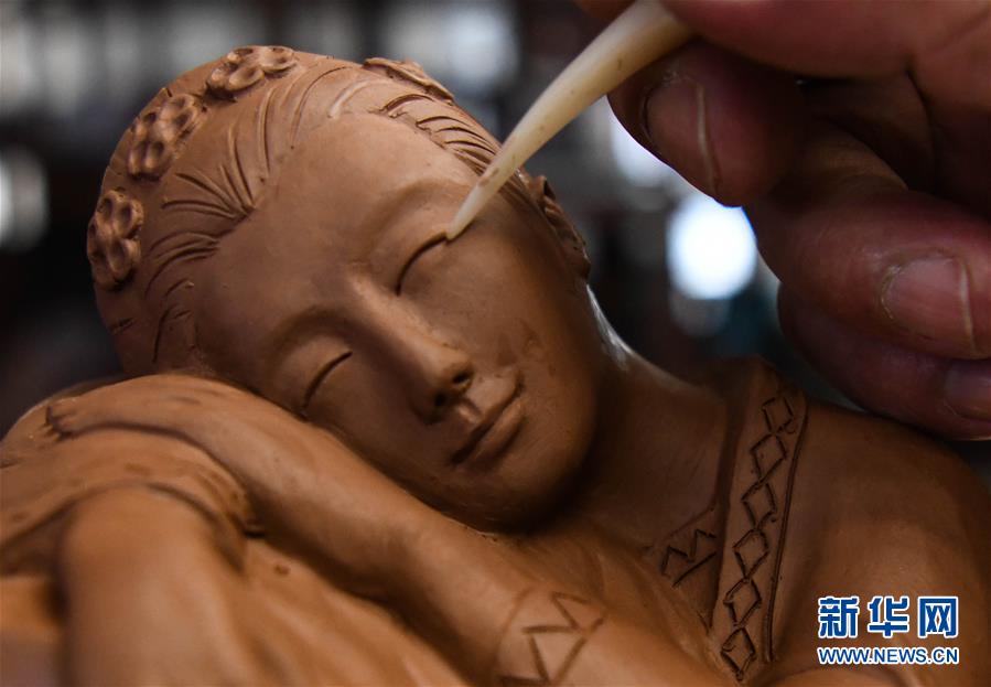 陆景平在加工坭兴陶工艺品(11月5日摄)。 新华社记者 张爱林 摄
