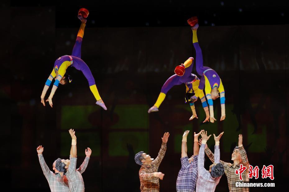 12月15日晚,中国杂技团《我和我的青春—青春ing》杂技主题晚会在北京保利剧院举行,本次演出采用现代化技术手段与杂技相结合的方式,通过八个节目为观众展现杂技艺术的魅力。图为演员表演杂技《我家有女初长成——顶碗》。中新社记者 盛佳鹏 摄