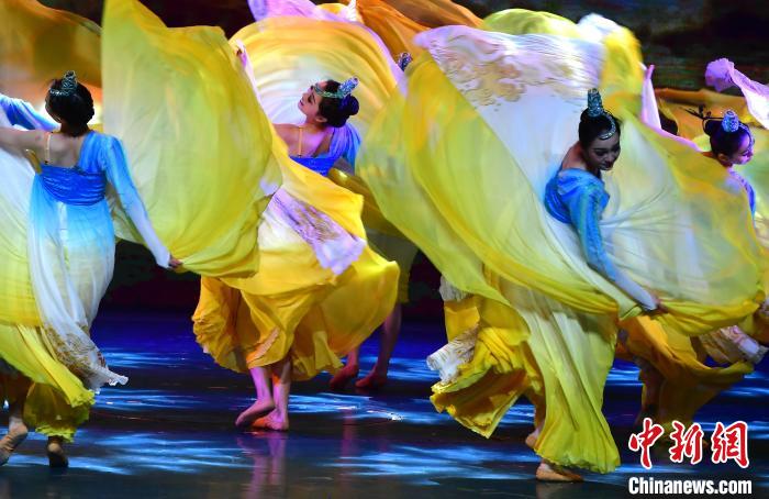 图为12月19日晚,演员在表演群舞《金色的海》。 张斌 摄
