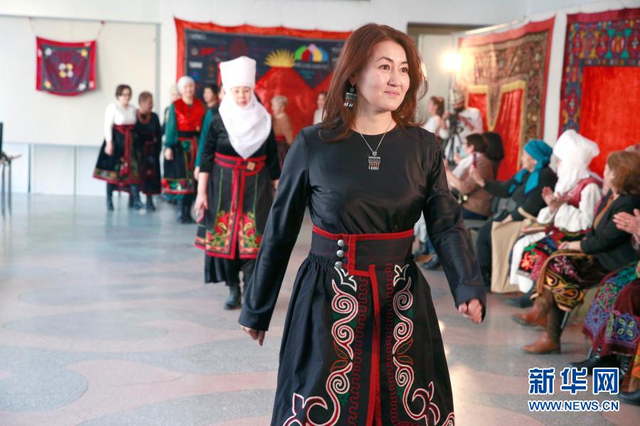当日,吉尔吉斯斯坦首都比什凯克的国家美术馆内举行传统手工艺品比赛,其中裙袍大赛引人关注。裙袍是吉尔吉斯族的传统服饰,它看起来像一条摆裙,一般穿在连衣裙或背心外面。裙袍的剪裁、颜色和图案能够反映女性的地位和状况。