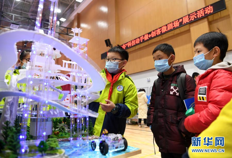 当日,安徽省合肥市蜀山区举办2020年“科技动手做+创客微剧场”展示活动,55件中小学学生作品参加现场演示,展现孩子们眼中的未来“智能城市”。