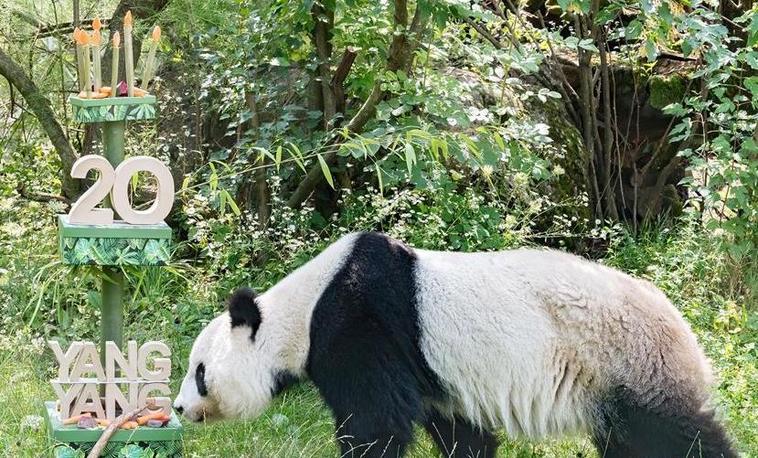 奥地利:大熊猫“阳阳”庆祝生日