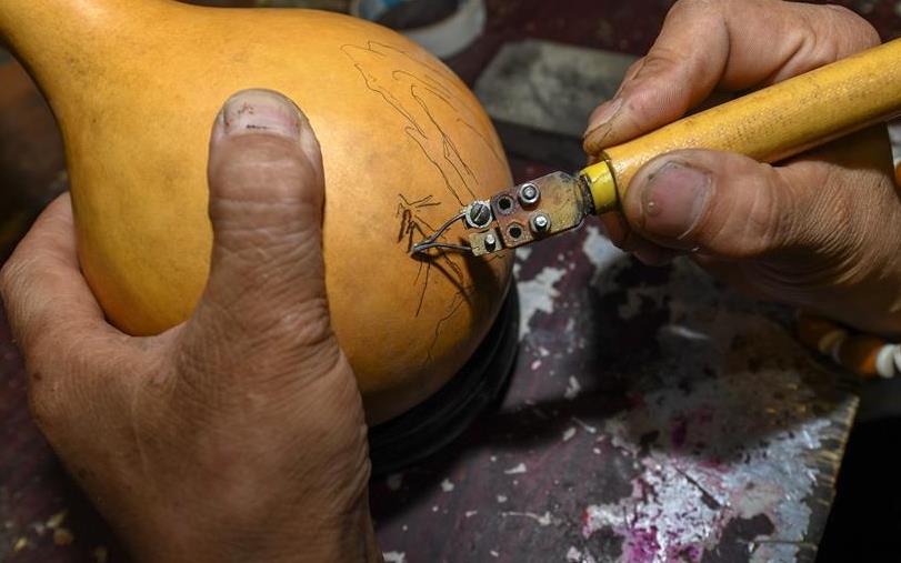 雕刻烙画让葫芦“讲故事”