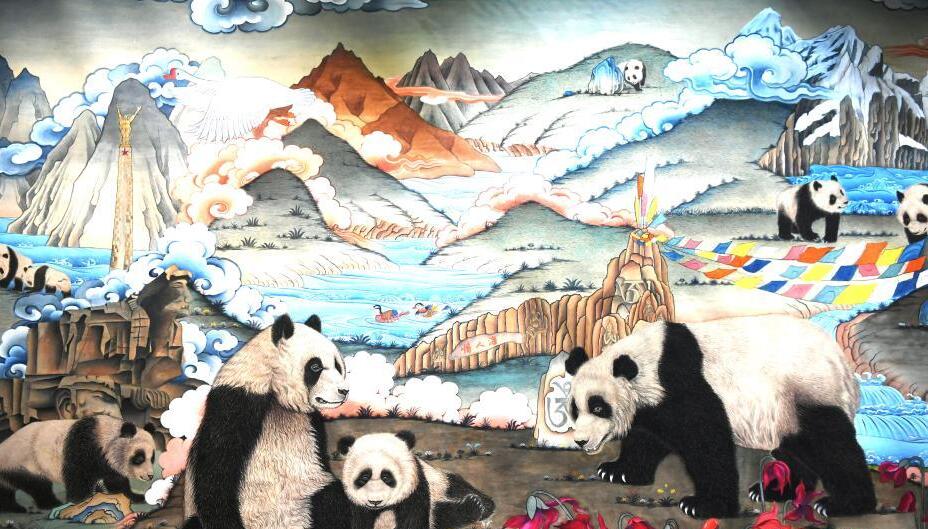 《大熊猫百图唐卡长卷》巨幅长卷在成都亮相