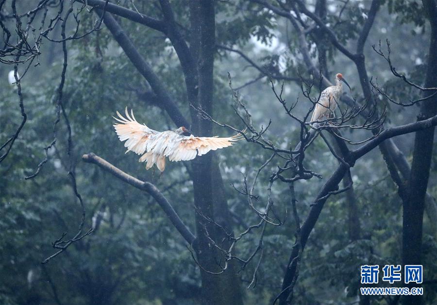 8月1日在洋县陈家村附近拍摄的朱鹮。 新华社记者兰红光摄