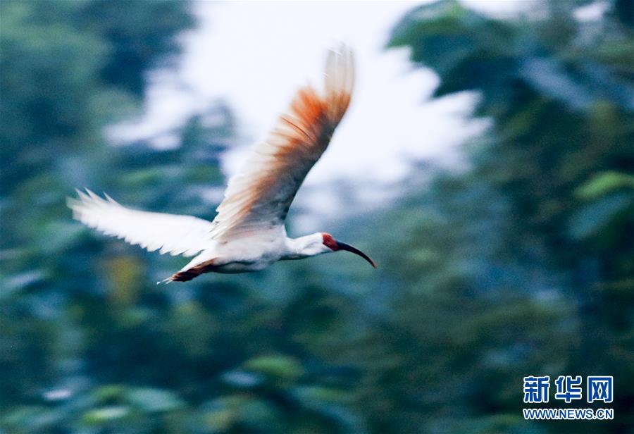 8月2日在洋县雷草沟水库附近拍摄的朱鹮。 新华社记者兰红光摄