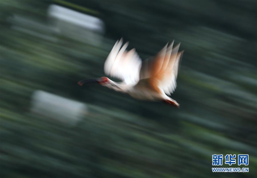 8月2日在洋县雷草沟水库附近拍摄的朱鹮。 新华社记者兰红光摄