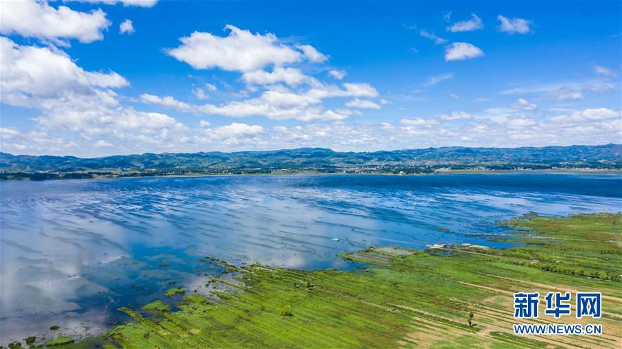 位于贵州省威宁彝族回族苗族自治县的草海国家级自然保护区(无人机照片,2019年6月20日摄)。 新华社记者 陶亮 摄