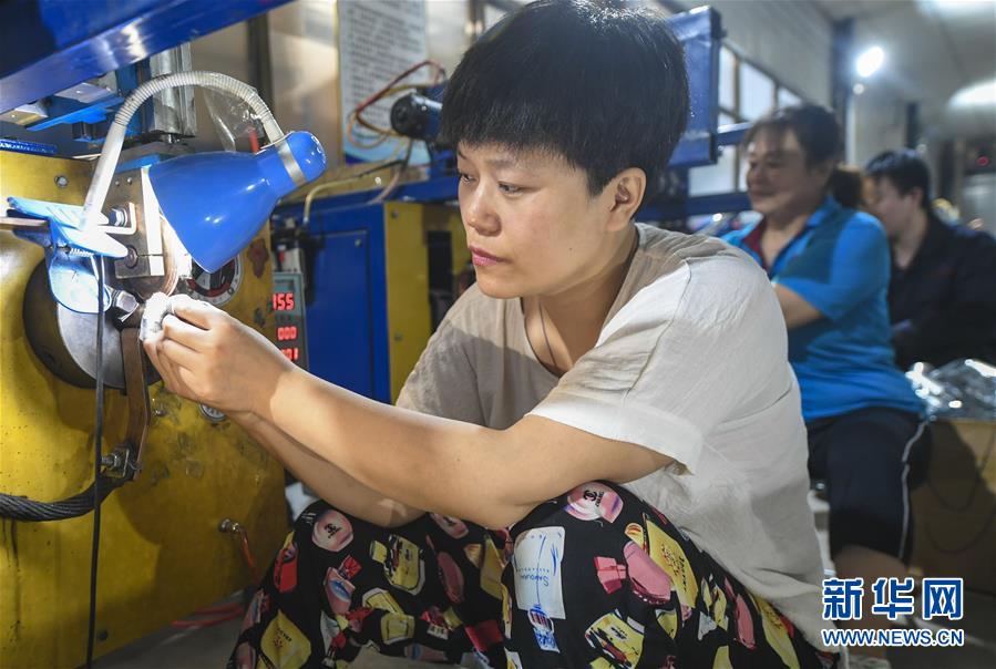 8月11日,河北省安平县新政村已脱贫的建档立卡贫困户弓雅捷在一家丝网企业焊接滤芯内筒。 近年来,河北省安平县将就业扶贫作为脱贫攻坚的重要抓手,通过举办就业扶贫专项招聘会、提供“一对一”免费就业培训服务、鼓励灵活就业等举措,多渠道增加贫困人口就业机会。截至目前,全县已有407名建档立卡脱贫户通过就业脱贫。 新华社记者 李晓果 摄