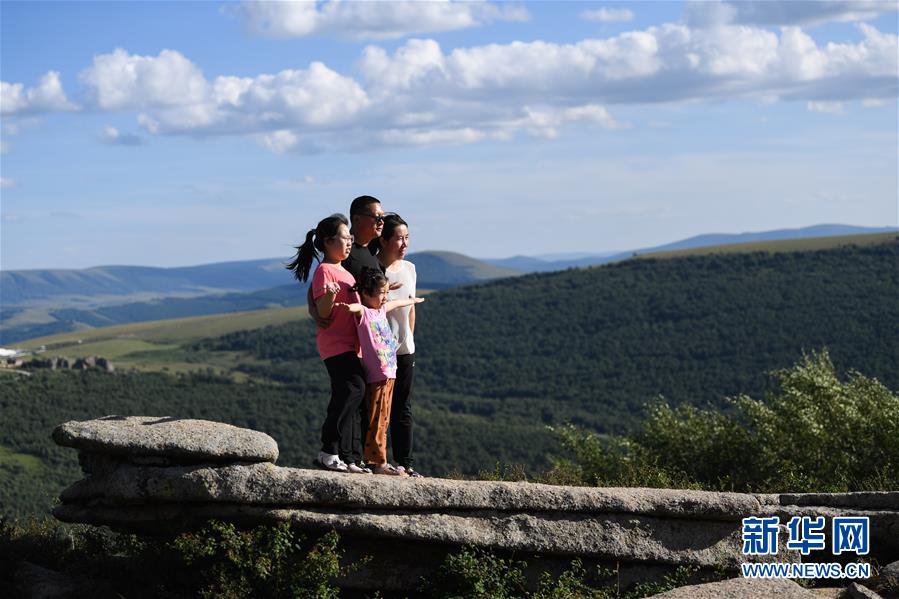 游客在克什克腾石阵景区游玩(8月11日摄)。 克什克腾旗位于内蒙古自治区赤峰市西北部,境内的湖泊、河流、草原、森林等自然景观,让人们流连忘返。 新华社记者 刘磊 摄