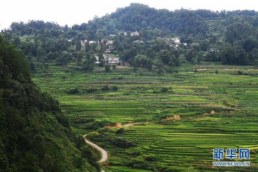 这是8月13日拍摄的鞍子镇大林村梯田景色。 时下,重庆市彭水苗族土家族自治县鞍子镇大林村的梯田景色迷人,构成一幅幅山乡田园美景。 新华社记者 王全超 摄