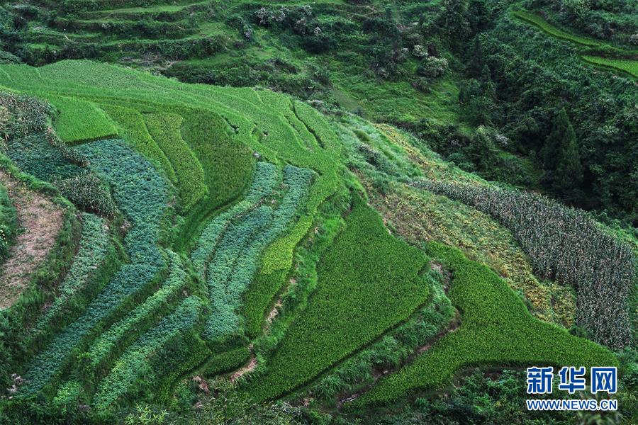 这是8月13日拍摄的鞍子镇大林村梯田景色。 时下,重庆市彭水苗族土家族自治县鞍子镇大林村的梯田景色迷人,构成一幅幅山乡田园美景。 新华社记者 王全超 摄