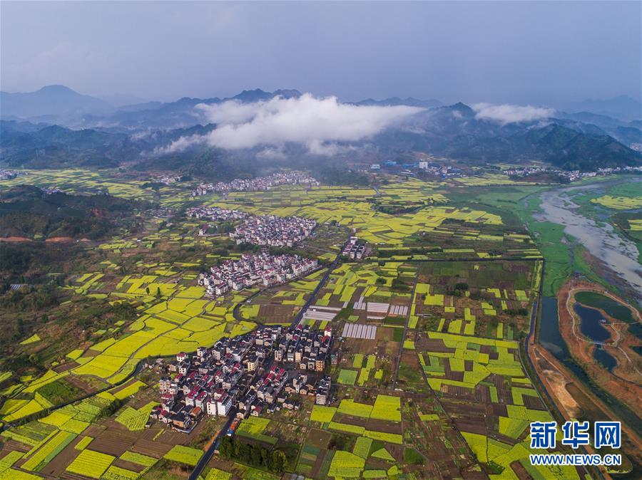 空中俯瞰浙江省杭州市淳安县千岛湖汾口镇(2018年4月3日摄,无人机照片)。