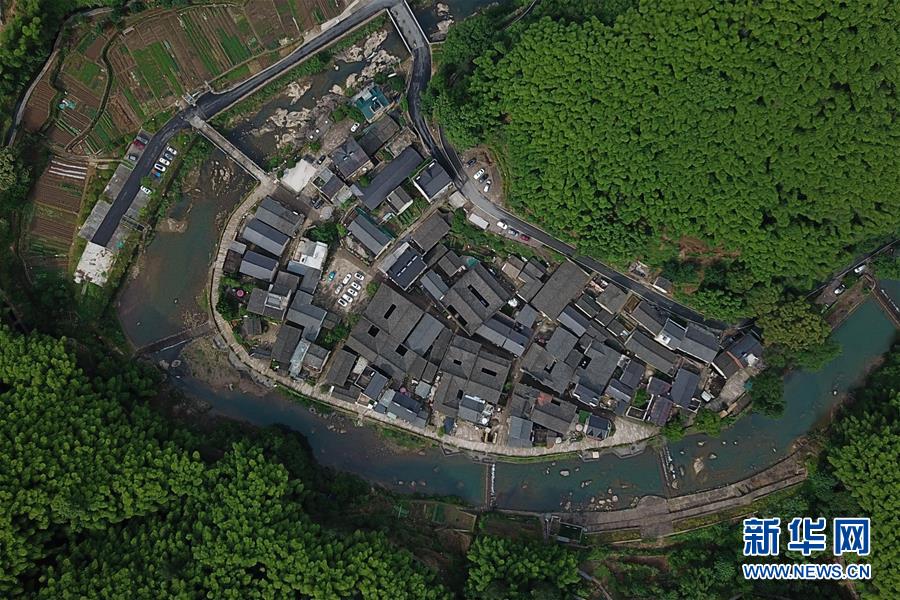 空中俯瞰浙江省桐庐县富春山镇石舍村(2019年5月26日摄,无人机照片)。 新华社记者 黄宗治 摄