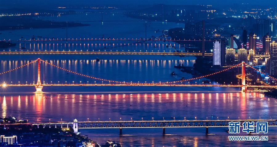 8月14日拍摄的武汉夜色。 夏夜的江城武汉景色迷人,美不胜收。 新华社记者 肖艺九 摄