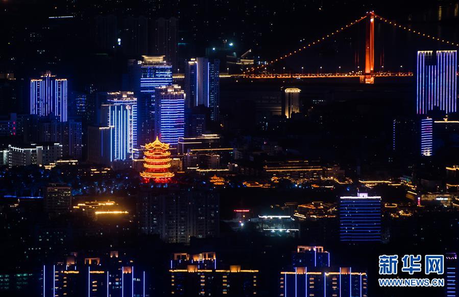 8月14日拍摄的武汉黄鹤楼景区。 夏夜的江城武汉景色迷人,美不胜收。 新华社记者 肖艺九 摄