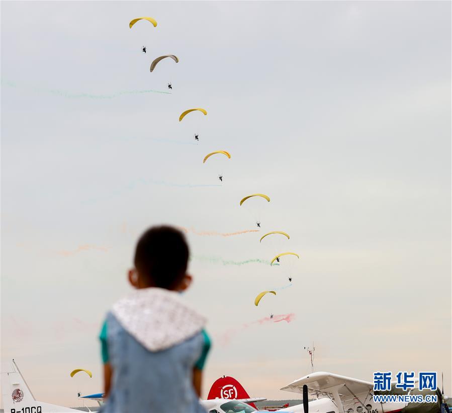 8月14日,观众在观看开幕式上的动力伞飞行表演。 当日,宁夏吴忠市盐池县举行2020年“航空嘉年华”系列活动,开幕式活动现场有动力伞、旋翼机、动力三角翼等飞行表演,让观众领略航空运动的魅力。 新华社记者 杨植森 摄