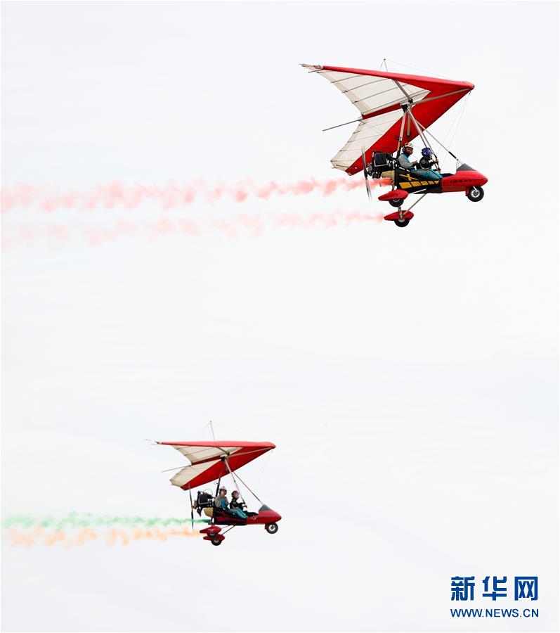 8月14日,表演者在开幕式上进行动力三角翼飞行表演。 当日,宁夏吴忠市盐池县举行2020年“航空嘉年华”系列活动,开幕式活动现场有动力伞、旋翼机、动力三角翼等飞行表演,让观众领略航空运动的魅力。 新华社记者 杨植森 摄