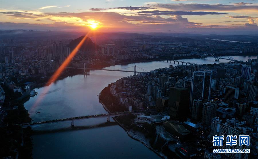 8月15日拍摄的广西柳州市柳江水域(无人机照片)。新华社发(黎寒池 摄)