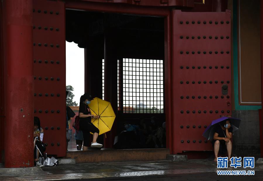 8月18日,游客在雨中的故宫博物院参观游览。新华社记者 金良快 摄
